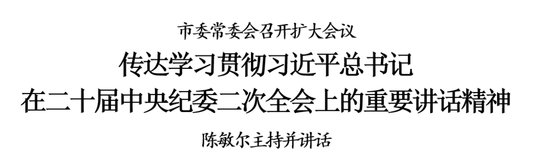 1月15日,市委常委会召开扩大会议,传达学习贯彻习近平总书记在二十届中央纪委二次全会上的重要讲话精神,传达学习贯彻习近平总书记对政法工作作出的重要指示和中央政法工作会议精神,听取市纪委监委2022年工作情况汇报,审议市纪委十二届二次全会工作报告,进一步研究部署岁末年初有关工作。市委书记陈敏尔主持会议并讲话。会议指出,习近平总书记在二十届中央纪委二次全会上的重要讲话,具有很强的政治性、指导性、针对性,体现了党中央以坚如磐石的意志推进全面从严治党的决心,体现了全面从严治党永远在路上、自我革命永远在路上的恒心,体现了我们党一定能赢得全面从严治党更大胜利的信心,为全面贯彻落实党的二十大精神、纵深推进党的建设新的伟大工程,指明了方向,提供了遵循。要深入学习领会,抓好贯彻落实,与学习贯彻习近平总书记在中央政治局民主生活会上的重要讲话精神贯通起来,与学习贯彻习近平总书记关于全面从严治党的重要论述结合起来,在新时代新征程上一刻不停推进全面从严治党。要深刻认识时刻保持解决大党独有难题的清醒和坚定的重大命题,把严的基调、严的措施、严的氛围长期坚持下去,把党的伟大自我革命进行到底。要深刻认识健全全面从严治党体系的重要要求,坚持制度治党、依规治党,运用治理的理念、系统的观念、辩证的思维管党治党建设党。要深刻认识坚定不移深入推进全面从严治党的战略部署,以有力政治监督保障党的二十大决策部署落实见效,在具体化、精准化、常态化上下更大功夫,把拥护“两个确立”、做到“两个维护”体现到贯彻落实的实际行动中。锲而不舍落实中央八项规定及其实施细则精神,全面加强党的纪律建设,加强对“一把手”和领导班子的监督,坚决打赢反腐败斗争攻坚战持久战。要加强纪检监察机关自身建设,以铁的纪律打造忠诚干净担当的铁军。会议强调,要把学习贯彻习近平总书记对政法工作的重要指示和中央政法工作会议精神与学习贯彻习近平总书记关于新时代政法工作的重要思想贯通起来,深刻领会把握政法工作的地位作用,深刻领会把握做好当前政法工作的部署要求,深刻领会把握加强党对政法工作领导的重要要求,深刻领会把握习近平总书记对人民警察的关心关爱,加强平安天津、法治天津建设,坚决筑牢首都政治“护城河”。统筹谋划推进天津政法工作现代化,在思想观念现代化、工作体系现代化、工作能力现代化上下功夫,扎实做好政法各项工作,全力维护政治安全,提高社会治理水平。要加强党对政法工作的领导,纵深推进全面从严管党治警,巩固深化政法队伍教育整顿成果,持续肃清流毒影响,加强政法队伍专业化建设,全力维护社会大局稳定。会议对做好岁末年初和春节假期有关工作提出要求。会议强调,要贯彻落实全国安全生产电视电话会议精神,坚持党政同责、一岗双责,进一步压实安全生产“四方责任”,加强安全生产隐患排查治理,切实保障人民群众生命财产安全。要做好疫情防控工作,加强老年人等重点人群和重点机构、重点场所的疫情防控,合理调配医疗资源和力量,满足群众就医需求,切实保健康、防重症。要加强值班值守,各级领导干部要保持“时时放心不下”的责任感,带头在岗带班,遇事靠前指挥,第一时间有效处置。要抓好保供稳价,加强市场监测和货源组织,加强重要民生商品产供销衔接,保障能源安全供给,确保城市运行平稳有序。要关心关爱困难群众,开展好送温暖活动,加强矛盾纠纷排查化解,加强社会面治安管控,确保人民群众度过平安欢乐祥和的节日。严格落实中央八项规定精神,严防“四风”反弹,确保廉洁过节、节俭过节。
